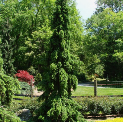 Ель сербская Pendula - один из красивейших сортов среди древесных, узкой плакучей формы, достигающий в 30 лет до 15 м в высоту. Годовой прирост 10-15 см. В 20-летнем возрасте высота растения 10-12 м при диаметре кроны 1,5 м. Побеги гибкие, свисают вдоль ствола. Иглы плоские, 1-2 см длиной, зеленые, снизу беловатые. Эта ель рекомендуется для больших парков и садов, как солитер на видные места. Устойчива к городским условиям.